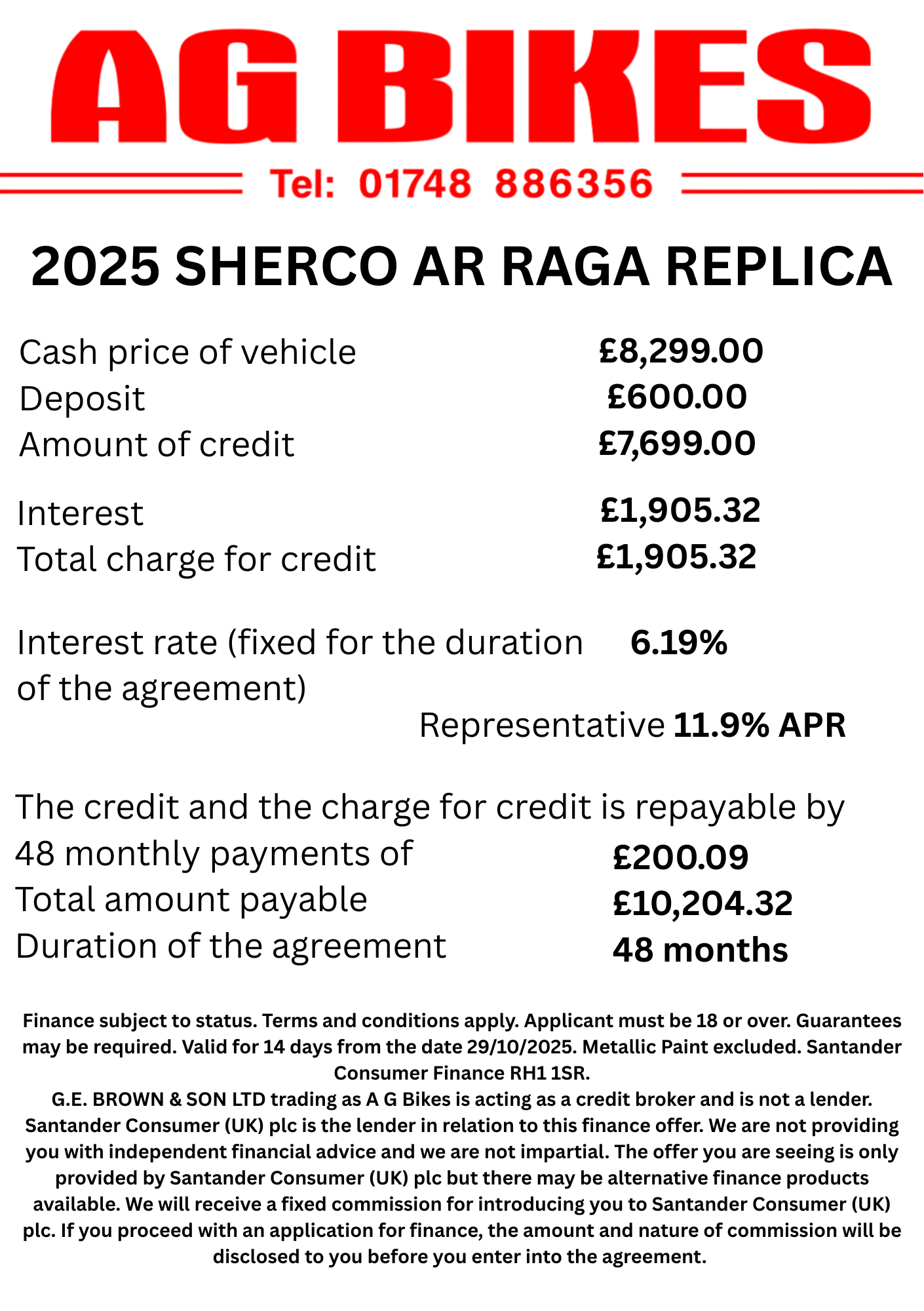 Santander Consumer Finance Available - representative example below, please contact us for more examples.